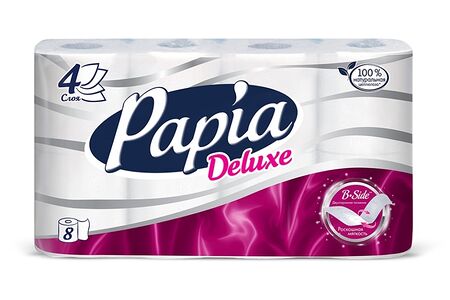Бумага туалетная Papia Deluxe Белая 4-слойная 8 рулонов доставка