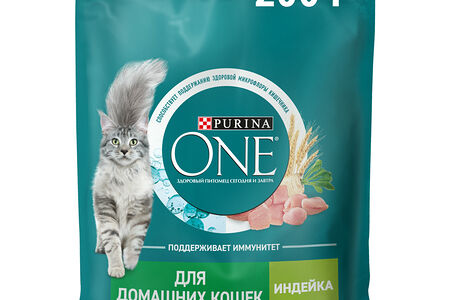 Сухой корм Purina ONE® полнорационный для взрослых кошек, живущих в домашних условиях, с высоким содержанием индейки, 200 г доставка