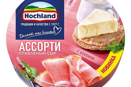 Сыр плавленый Ассорти сливочнный с беконом 50% Hochland 8 х 17.5г Россия доставка