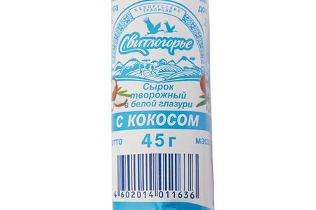 Сырок глазированный Свитлогорье с кокосом в белой глазури, 23% доставка