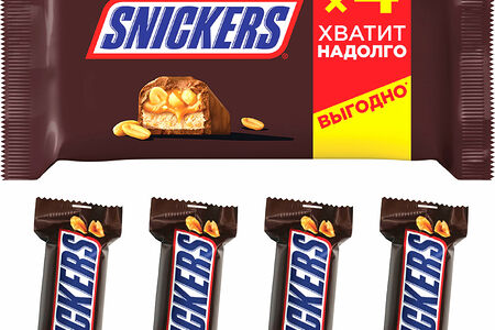 Snickers шоколадный батончик с карамелью, арахисом и нугой, пачка 4шт по 40г доставка