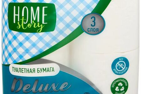 Бумага туалетная белая с тиснением трехслойная Home Story, 4шт доставка