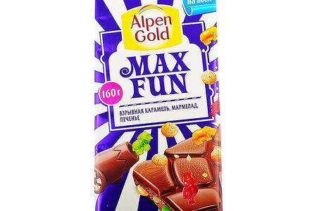 Шоколад Alpen Gold Max Fun с карамелью мармеладом и печеньем доставка