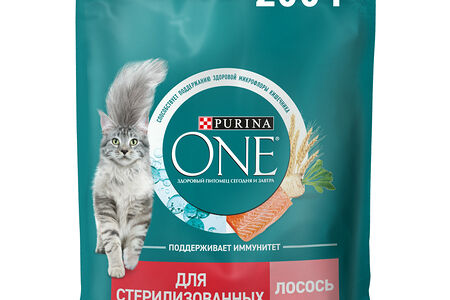 Сухой корм Purina ONE® полнорационный для стерилизованных кошек и кастрированных котов, с высоким содержанием лосося, 200 г доставка