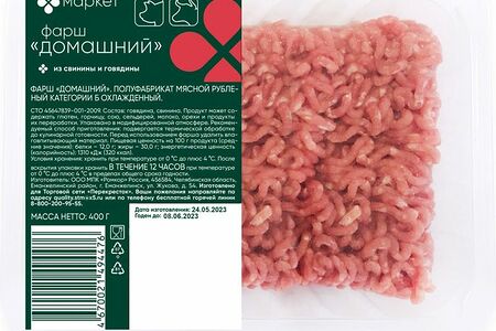 Фарш Домашний из свинины и говядины категории Б охлажденный Маркет, 400г доставка