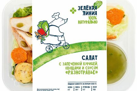 Салат с запеченной курицей овощами и соусом Разнотравье Зелёная Линия, 200г доставка
