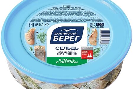Сельдь Балтийский Берег по-царски филе-кусочки в масле с укропом доставка