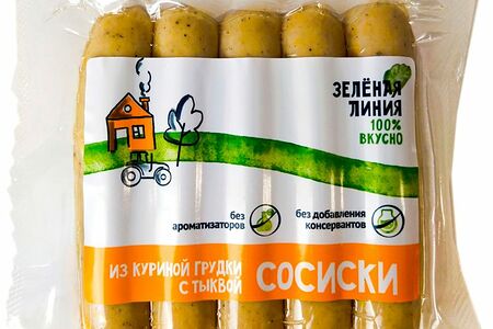 Сосиски варёные из грудки куриной с тыквой высший сорт Зелёная Линия доставка
