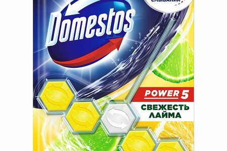 Блок для очищения Domestos Power 5 для унитаза свежесть лайма, 55г доставка
