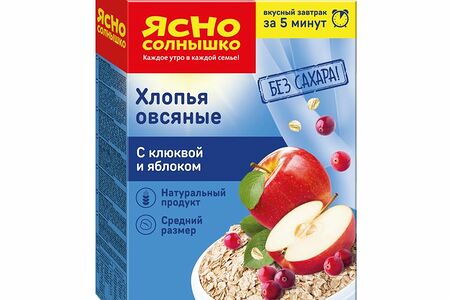 Хлопья овсяные Ясно Солнышко клюква-яблоко, 300г доставка