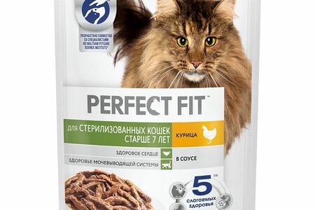 Влажный корм Perfect Fit для стерилизованных кошек старше 7 лет с курицей в соусе, 75г доставка