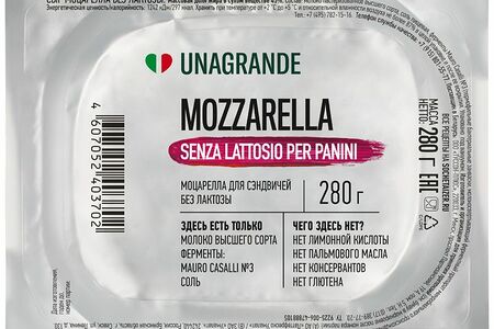 Сыр Unagrande Моцарелла без лактозы для сэндвичей 45%, 280г доставка