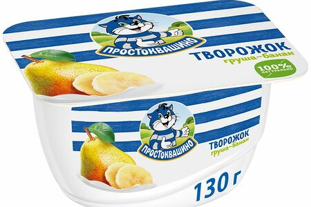 Срок годности в днях: 40Состав: Творог обезжиренный, нормализованные сливки, наполнитель (сахар; груша; пюре банана; вода; крахмал кукурузный; натуральный ароматизатор; загуститель - пектины; сок лимона концентрированный; краситель – каротины), сахар.Пищевая ценность: Калорийность: 111Белки: 6.6Жиры: 3.6Углеводы: 13Страна изготовления: РоссияПроизводитель: Простоквашино