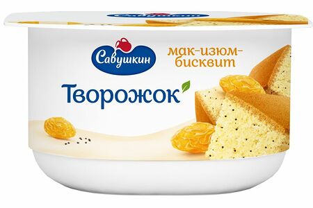 Паста творожная Савушкин мак-изюм-бисквит 3.5%, 120г доставка