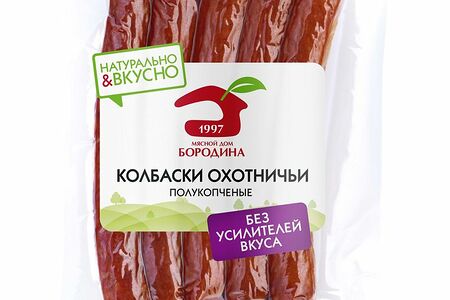 Колбаски полукопчёные МД Бородина Охотничьи, 230г доставка