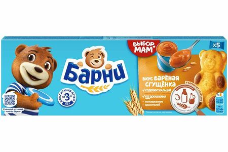 Пирожное Медвежонок Барни бисквитное с начинкой со вкусом варёного сгущённого молока, 150г доставка
