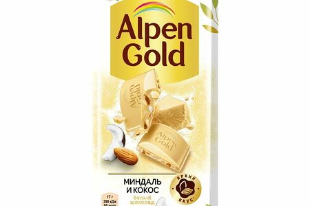 Шоколад белый Alpen Gold с миндалём и кокосовой стружкой, 85г доставка
