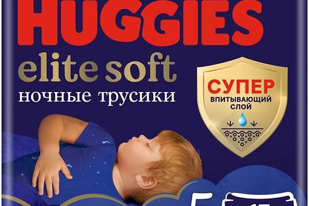 Трусики-подгузники Huggies Элит Софт 5 ночные 12-17кг, 17шт доставка