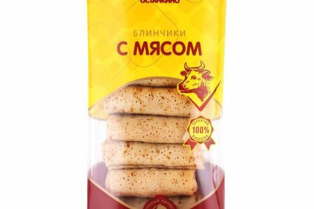 Срок годности в днях: 90Состав: Тесто для блинов: тесто: мука пшеничная в/с, вода, молоко сухое, масло растительное, сахар, меланж сухой, соль, разрыхлитель гидрокарбонат натрия. начинка: говядина, свинина, вода, соевый белок, лук жареный, животный белок, соль, пшеничная клетчатка, петрушка сухая, укроп сухой, перец черный.Пищевая ценность: Калорийность: 270Белки: 8Жиры: 11Углеводы: 33Страна изготовления: РоссияПроизводитель: Останкино