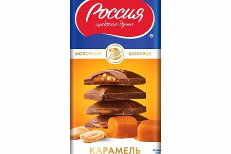 Шоколад молочный Россия-Щедрая Душа с карамелью и арахисом, 82г доставка