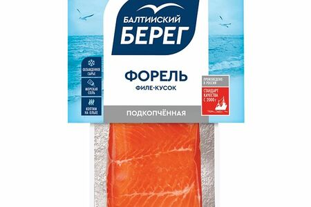 Форель Балтийский Берег радужная филе-кусок с кожей подкопченная, 150г доставка