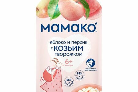 Пюре Мамако козий творожок с яблоком и персиком с 6 месяцев, 120г доставка