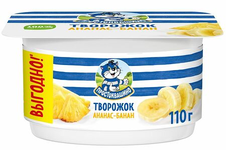Творожок Простоквашино с ананасом и бананом 3.6%, 110г доставка