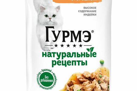 Корм Gourmet Натуральные рецепты Томлёная индейка с горошком для кошек, 75г доставка