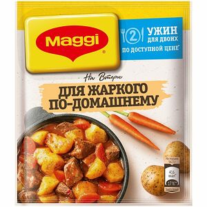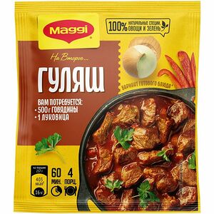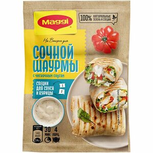 Срок годности в днях: 365Состав: Овощи (томат (порошок), лук, чеснок (порошок)), йодированная соль, подсолнечное масло, жир кулинарный (из пальмового масла), специи и пряные травы (петрушка, базилик, перец черный, кориандр, чабер), сахар, ароматизатор (дым), кукурузный крахмал, регулятор кислотности (лимонная кислота).Пищевая ценность: Калорийность: 317Белки: 11Жиры: 4.3Углеводы: 55Страна изготовления: РоссияПроизводитель: Maggi