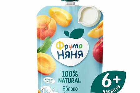 Срок годности в днях: 365Состав: Пюре из яблок, пюре из абрикосов, сливки, сахар. Продукт изготовлен из концентрированного абрикосового пюре.Пищевая ценность: Калорийность: 73Белки: 0.6Жиры: 1Углеводы: 15.5Страна изготовления: РоссияПроизводитель: ФрутоНяня