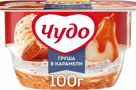 Творог взбитый Чудо груша в карамели с пломбиром и миндалём 4.2% 100г доставка