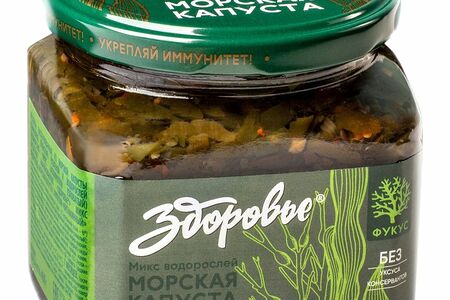 Срок годности в днях: 210Состав: Морская капуста сушеная резаная (термической сушки - a*, естественной сушки - b*) ламинария японская; водоросли беломорские пищевые фукус дробленый (аскофиллум узловатый); маринад (вода питьевая; сахар; соль; овощи сушеные резаные – лук репчатый, паприка красная, морковь; регуляторы кислотности – лимонная кислота, молочная кислота).Пищевая ценность: Калорийность: 20Белки: 1Жиры: 0.1Углеводы: 4Страна изготовления: РоссияПроизводитель: Здоровье