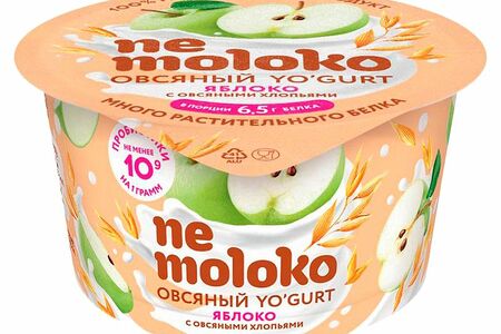 Срок годности в днях: 40Состав: Вода, мука овсяная, наполнитель Яблоко-Овсяные хлопья (сахар, яблоко (25%), вода, овсяные хлопья (6,5%), натуральный ароматизатор, концентрированный лимонный сок, загуститель (пектины), стабилизатор цвета (концентрат из сафлора)), белок гороховый (изолят), масло рапсовое, крахмал кукурузный, загустители (пектин, камедь рожкового дерева), витаминно-минеральный премикс (витамины (D2, В2(рибофлавин), В12), кальций (трикальций фосфат, кальция карбонат)), заквасочные культуры (Bifidobacterium, Lactobacillius delbrueckii subsp. bulgaricus, Streptococcus thermophilus).Пищевая ценность: Калорийность: 130Белки: 5Жиры: 5Углеводы: 16Страна изготовления: РоссияПроизводитель: Nemoloko