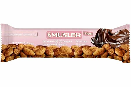Срок годности в днях: 270Состав: Патока крахмальная (мальтодекстрин), арахис, миндаль, глазурь (подсластитель мальтит, заменитель какао-масла лауринового типа, какао-порошок, эмульгаторы (лецитин соевый, глицерин), ароматизатор пищевой Ванилин, подсластитель стевиозид), ПЭК кукурузный молотый, рис молотый, масло кокосовое, шоколад тёмный (какао тертое, подсластители: мальтит, стевиозид, инулин, масло какао, мальтодекстрин, эмульгатор – лецитин соевый, ароматизатор натуральный ванилин), лецитин соевый -эмульгатор, кислота лимонная-регулятор кислотности, ароматизатор натуральный шоколад, экстракт розмарина. Продукт может содержать следы кунжута. Продукт готов к употреблению. Хранить в сухом, защищенном от прямых солнечных лучей месте при температуре не выше 20˚С и относительной влажности воздуха не более 75%. Открытую упаковку не хранить, употребить сразу после вскрытия.Пищевая ценность: Калорийность: 489Белки: 11Жиры: 29Углеводы: 48Страна изготовления: РоссияПроизводитель: Musler