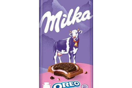 Шоколад молочный Milka с круглым печеньем Oreo с начинкой со вкусом клубники, 92г доставка