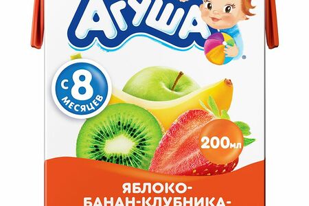 Сок Агуша яблоко-банан-клубника-арония-киви с мякотью с 8 месяцев, 200мл доставка