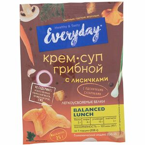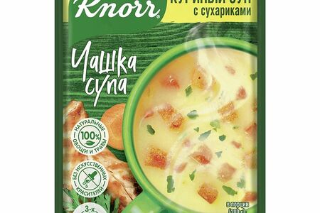 Срок годности в днях: 365Состав: Крахмал картофельный, мальтодекстрин, сухарики (пшеничная мука, растительное масло, соль, дрожжи, антиокислитель экстракт розмарина), жир растительный, соль, мука пшеничная, усилители вкуса и аромата (глутамат, инозинат, гуанилат натрия); ароматизатор куриный (содержатся яичный и молочный продукты), лактоза, морковь, сахар, дрожжевой экстракт, лук репчатый, молочный белок, петрушка, куркума, загуститель ксантановая камедь перец белый экстракт жареного лука чеснок, любисток, регулятор кислотности лимонная кислота, курятина вареная сушеная.Пищевая ценность: Калорийность: 400Белки: 7Жиры: 17Углеводы: 55Страна изготовления: РоссияПроизводитель: Knorr