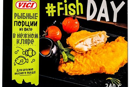Минтай Vici Fish Day филе порции в нежном кляре обжаренные замороженные, 240г доставка