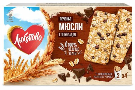 Печенье Любятово Мюсли злаковое с шоколадом, 120г доставка