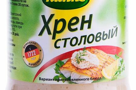 Срок годности в днях: 540Состав: Хрен, спиртовой уксус, вода, рапсовое масло (10%), глюкозно-фруктозный сироп, сахар, соль, лимонная кислота, антиокислитель: метабисульфит натрия, загустители: гуаровая камедь, камедь рожкового дерева, ксантан; молочная сыворотка.Пищевая ценность: Калорийность: 182Белки: 2.3Жиры: 11Углеводы: 16Страна изготовления: ГерманияПроизводитель: Kuhne