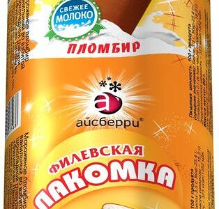 Срок годности в днях: 540Состав: Пломбир: молоко коровье цельное, масло сливочное, молоко цельное сгущенное с сахаром (молоко цельное, молоко обезжиренное, сахар (сахароза)), вода питьевая, сахар, молоко цельное сухое, сухой глюкозный сироп, комплексная пищевая добавка (эмульгатор- моно- и диглицериды жирных кислот, стабилизаторы: гуаровая камедь, камедь рожкового дерева, карбоксиметилцеллюлоза), ароматизатор пищевой «Ваниль». nГлазурь шоколадная: масло сливочное, сахар, масло кокосовое, какао-порошок, эмульгатор соевый лецитин. Массовая доля жира -25,6%.Пищевая ценность: Калорийность: 320Белки: 3Жиры: 25.6Углеводы: 20Страна изготовления: РоссияПроизводитель: Филевское