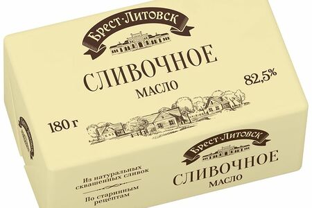 Масло сладкосливочное Брест-Литовск несолёное высшего сорта 82.5%, 180г доставка