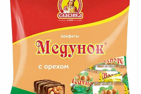 Конфеты Славянка глазированные медунок с орехом, 202г доставка