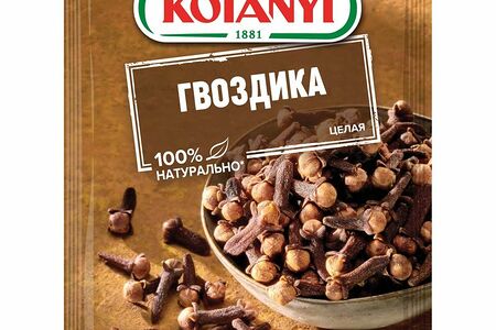 Срок годности в днях: 1440Состав: Гвоздика.Пищевая ценность: Калорийность: 433Белки: 6Жиры: 20Углеводы: 52Страна изготовления: АвстрияПроизводитель: Kotanyi