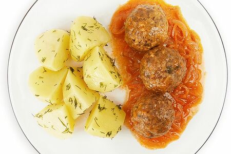 Тефтели мясные с отварным картофелем Шеф Перекрёсток, 280г доставка