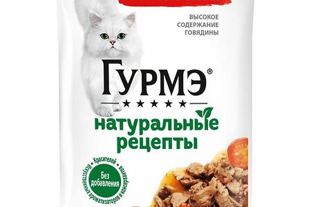 Корм Gourmet Натуральные рецепты Тушёная говядина с томатами для кошек, 75г доставка