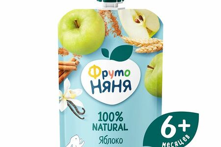 Срок годности в днях: 365Состав: Пюре из яблок, печенье (мука пшеничная, сахар, масло сливочное, яйцо куриное, экстракт солодовый, молоко сухое цельное, крахмал кукурузный, разрыхлитель - гидрокарбонат натрия), сок яблочный концентрированный, экстракт ванили, экстракт корицы, вода питьевая.Пищевая ценность: Калорийность: 60Белки: 0.5Жиры: 0Углеводы: 14.5Страна изготовления: РоссияПроизводитель: ФрутоНяня