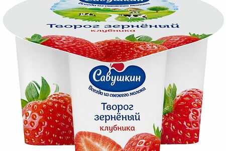 Творог Савушкин 101 зерно + сливки клубника 5%, 130г доставка