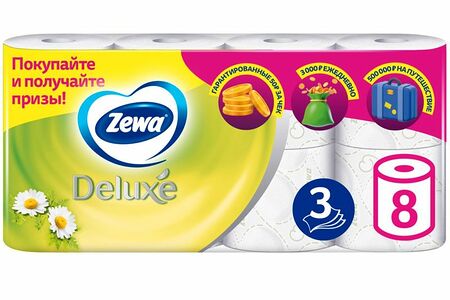 Бумага туалетная Zewa Deluxe 8шт Ромашка 3 слоя доставка
