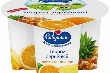 Творог Савушкин Продукт 101 зерно и сливки с фруктовым наполнителем Апельсин-ананас 5%, 130г доставка